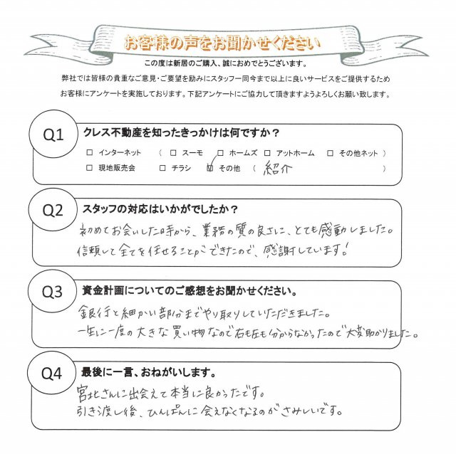 一生に一度の大きな買い物なので右も左も分からなかったので大変助かりました。