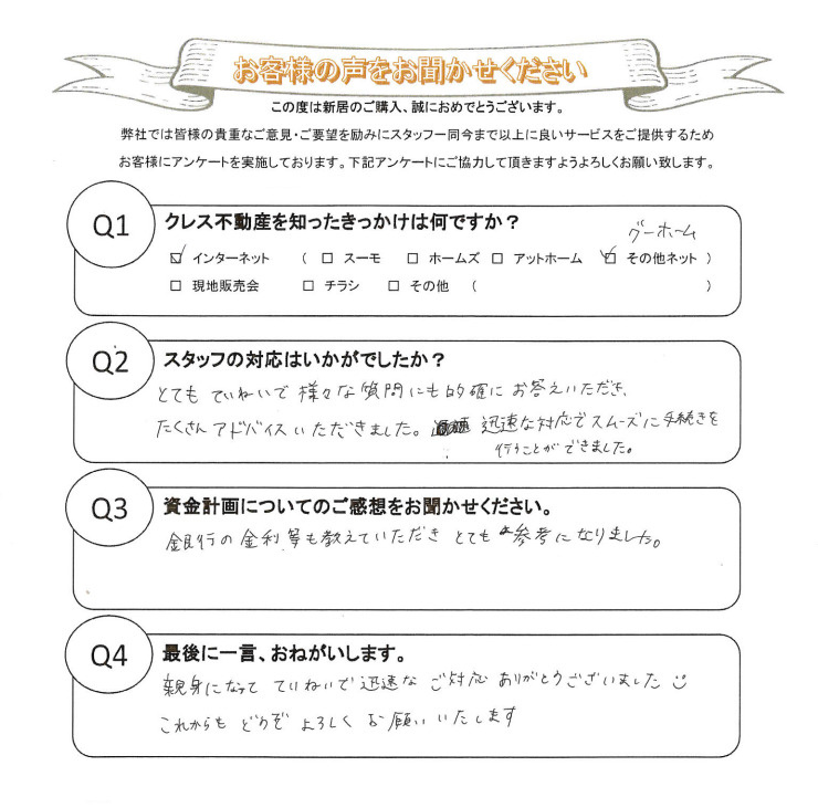 この度は弊社にて住宅をご購入いただきありがうございました。