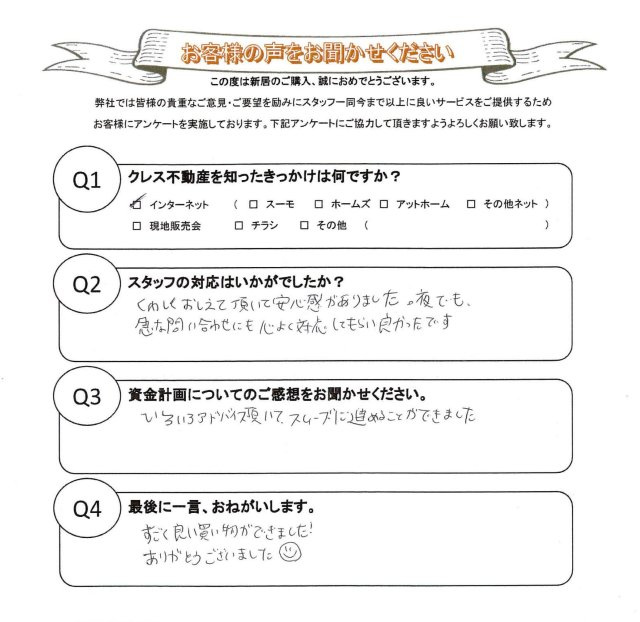 安心して住宅をご購入頂けた事を、大変嬉しく思います。
