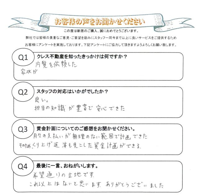 この度は住宅購入に際し、数ある不動産会社の中から弊社をお選び頂き有難うございました。
