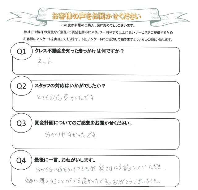 この度は弊社にて住宅をご購入頂き、ありがとうございました。