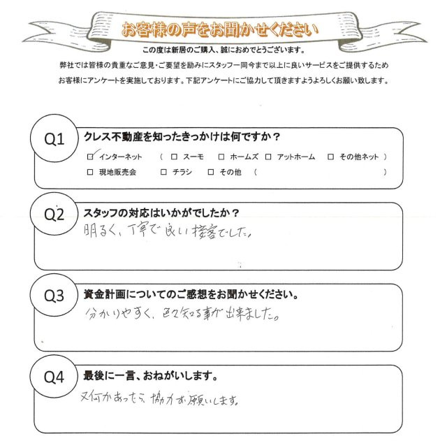 この度は弊社より新築一戸建ての物件をご購入頂きまして、誠にありがとうございます。