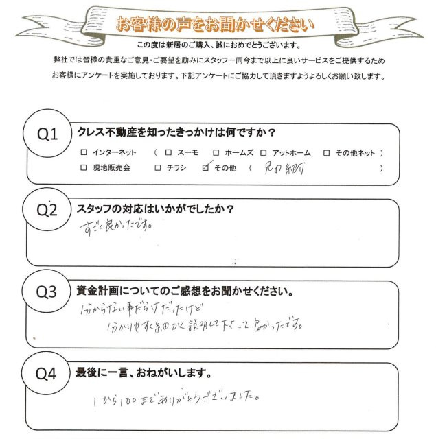 この度は弊社にて住宅をご購入頂き、ありがとうございました。