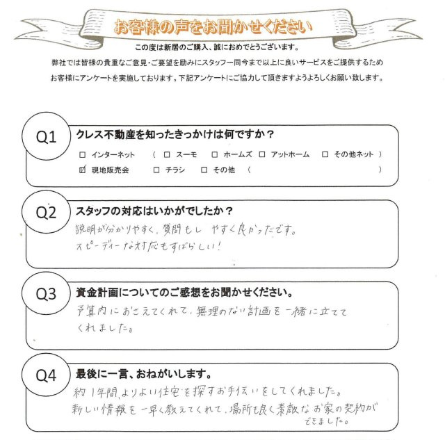 新しい情報を一早く教えてくれて、場所も良く素敵なお家の契約ができました。